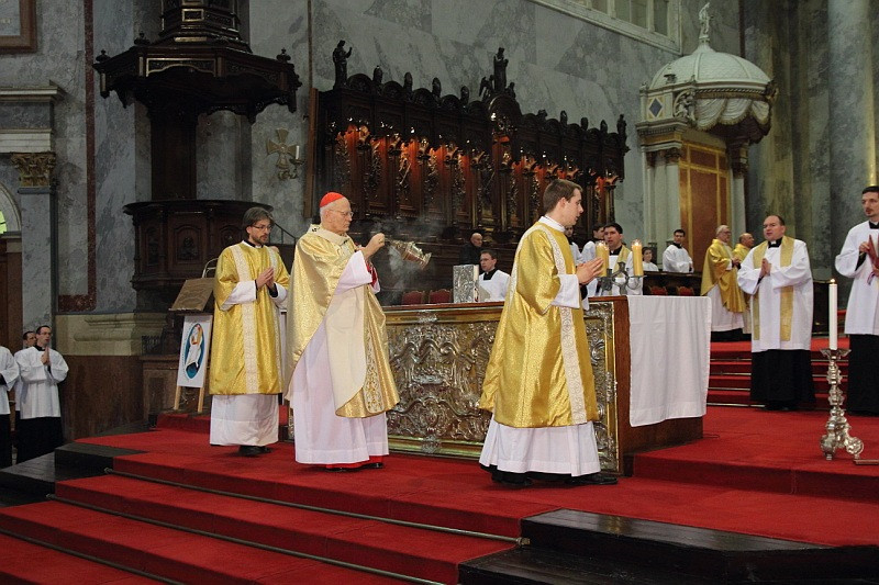 Erdő Péter bíboros a budapesti Szent István-bazilikában az Esztergom-Budapesti Főegyházmegye papságával és az egyházmegye területén szolgáló szerzetes papokkal közösen mutatta be a krizmaszentelési szentmisét, melyen koncelebrált Alberto Bottari de Castello apostoli nuncius és a főegyházmegye két segédpüspöke, Cserháti Ferenc és Snell György.