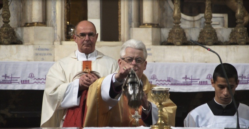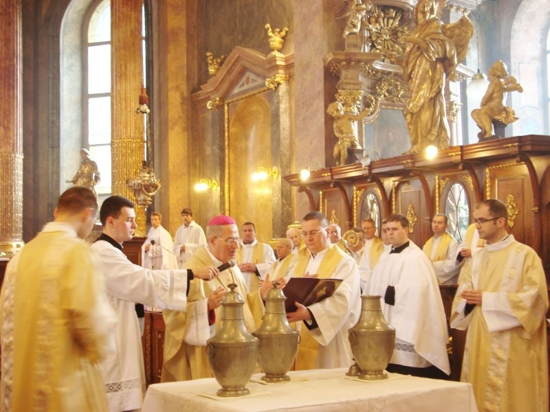 Spányi Antal megyéspüspök mutatott be szentmisét nagycsütörtökön délelőtt a székesfehérvári bazilikában, amelyen a hagyományok szerint sor került a krizma és a szent olaj megáldására. A szertartáson jelen volt Takács Nándor nyugalmazott püspök, az egyházmegye egész papsága, a szerzetesrendek képviselői és számos hívő, aki elkísérte papját az ünnepre.