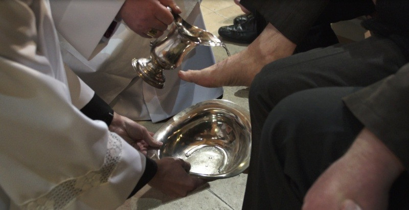 A Szent Liturgiát a lábmosás szertartása zárta, amelynek során az érsek megmosta tizenkét pap lábát. Ez a szertartás felidézi, miként mosta meg Jézus tanítványai lábát a Titkos Vacsora estéjén, felhívva ezzel az apostolok figyelmét a szolgálat fontosságára. A rítus lényegét fogalmazza meg az utolsó imádság: „Te, Uralkodónk, jöjj most méltatlan szolgáid közé, akik példádat követik; mosd le rólunk lelkünk minden szennyét és tisztátalanságát, hogy megtisztulva a bűneink folytán ránk tapadt portól, s a szeretet törlőjével egymást megtörölve kedvedben járhassunk életünk minden napján.”