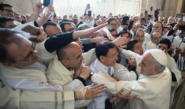 Pápasága első évétől kezdve Ferenc pápa együtt ebédel nagycsütörtökön – amikor az Egyház a papság alapítására emlékezik – tíz római egyházmegyés pappal, illetve szerzetessel. A Szentatya ezzel is szeretné megélni a szeretetközösséget egyházmegyéje papjaival.