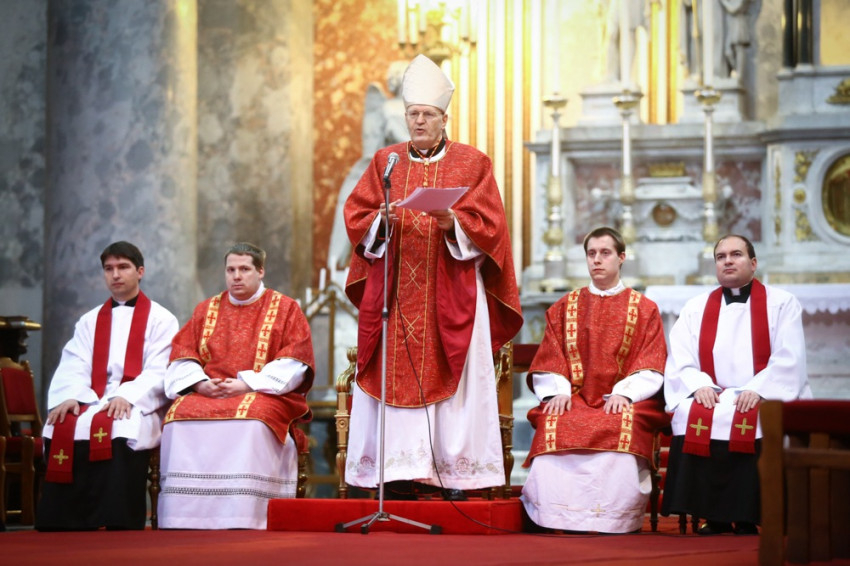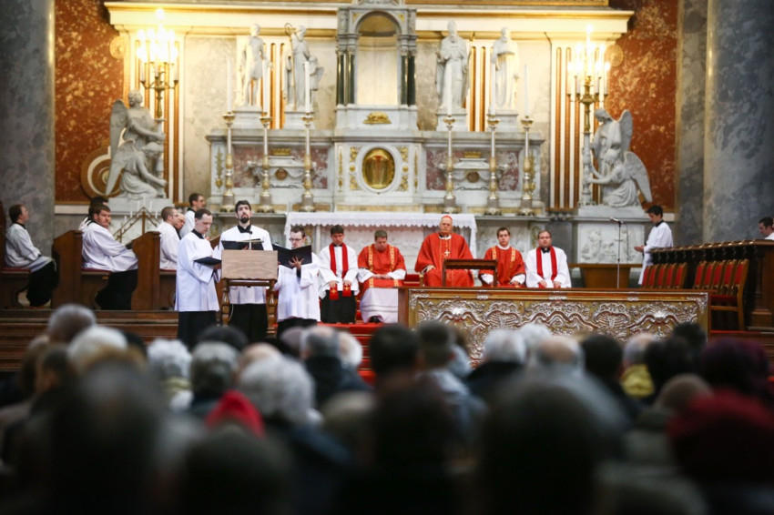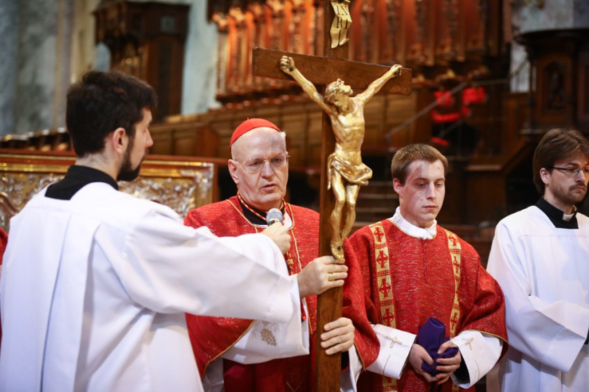 Krisztus a kereszt magaslatáról is tanít. Isten parancsát, a főparancsot, a legfőbb törvényt tanítja nekünk, hogy mi is teljes szívünkből, teljes lelkünkből és minden erőnkből szeressünk. Mert ez nem veszteség, ez nem lemondás, hanem harmónia Istennel és a világmindenséggel. Ebben van életünk és boldogságunk – hangsúlyozta a főpásztor, majd az ismert keresztúti ének szavaival zárta nagypénteki szentbeszédét: „Mi egyetlen boldogságunk, szent keresztfa sírva áldunk!”