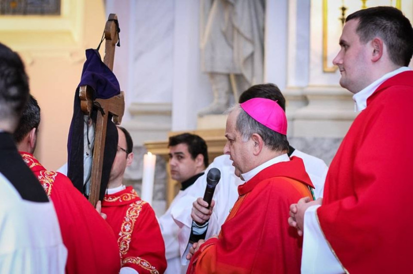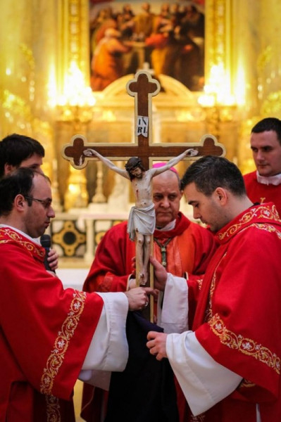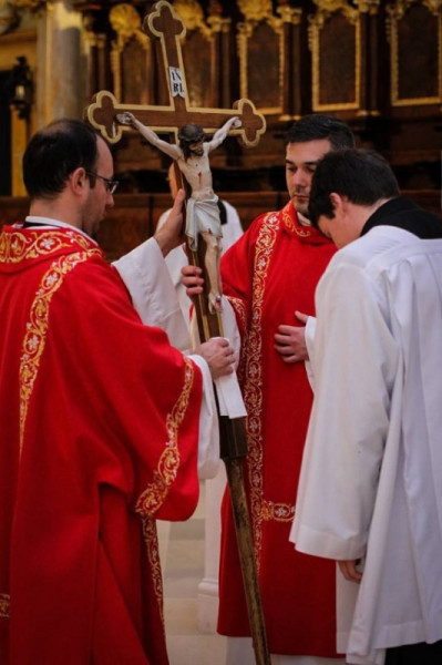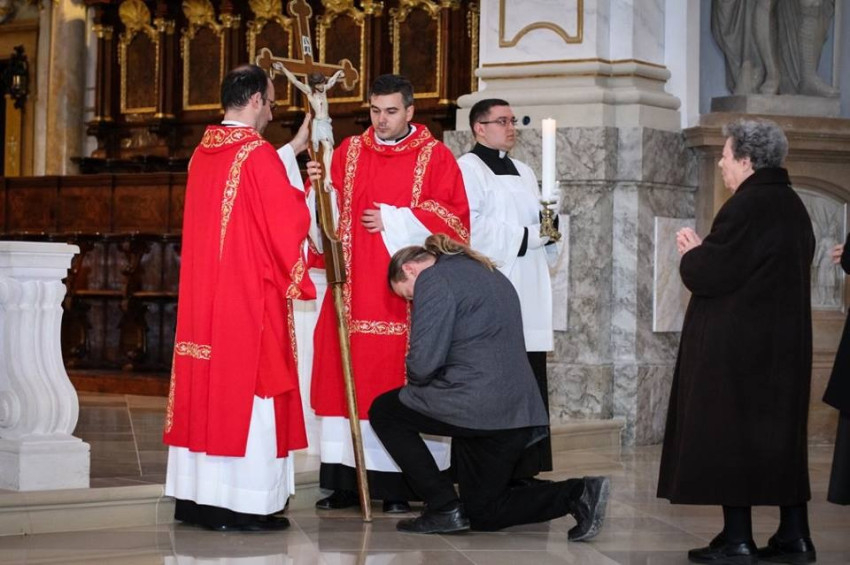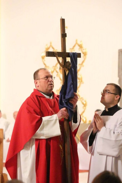 A szentbeszéd után az egyetemes könyörgést imádkozták a hívek, majd hódolattal hajtottak térdet a kereszt előtt, amelyben a Golgota keresztjén függő Megváltót imádjuk, aki értünk szenvedett.