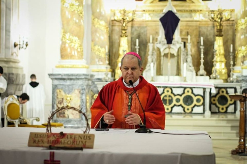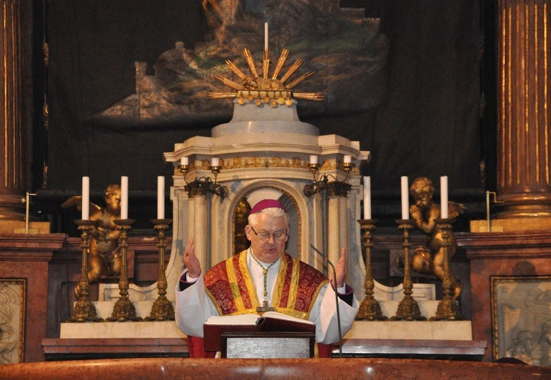A szenvedéstörténet felidézése után a főpásztor szentbeszédében kiemelte: a szenvedés és a halál láttán minden jóérzésű ember megrendül, értetlenül áll mások gonoszsága láttán, akik szenvedést, halált kívánnak. Kik voltak a vádlók? – tette fel a kérdést a főpásztor. Elmondta: a négy evangélista nem ugyanazt a választ adja erre a kérdésre. Az elhangzott János evangélium úgy fogalmaz: a zsidók. De a kifejezés nem Izrael népére vonatkozik, nem rasszista, hiszen János, Jézus és a tanítványok is zsidók voltak. XVI. Benedek pápa egy könyvében elmondja: János evangélista esetében a templomi arisztokráciát jelenti ez a szó. Tehát nem a népet általában, hanem a főpapokat és a véneket teszi felelőssé. A szentlecke Jézust is főpapnak nevezi. Olyan főpap, aki a Jelenések Könyve szerint szeret bennünket és vérével megváltott. A szentlecke pedig utal arra, hogy Krisztus a ránk váró javak főpapjaként jött el és nem a bakok vagy borjak vérével, hanem saját vérével lépett be a szentélybe és örök megváltást szerzett.