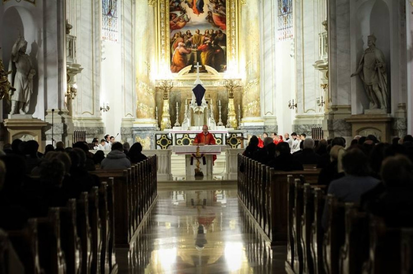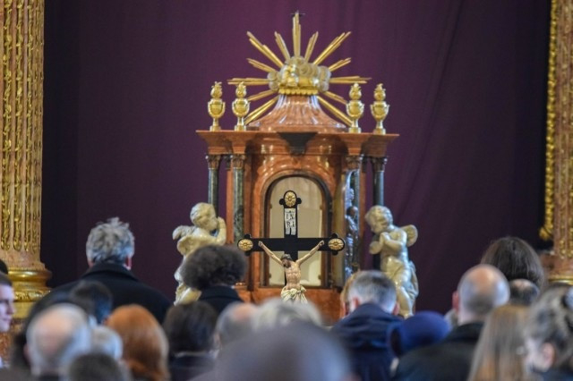 Jézus Krisztus kínszenvedésére és kereszthalálára emlékezve Veres András megyéspüspök március 30-án nagypénteki szertartást vezetett a győri Nagyboldogasszony-székesegyházban.