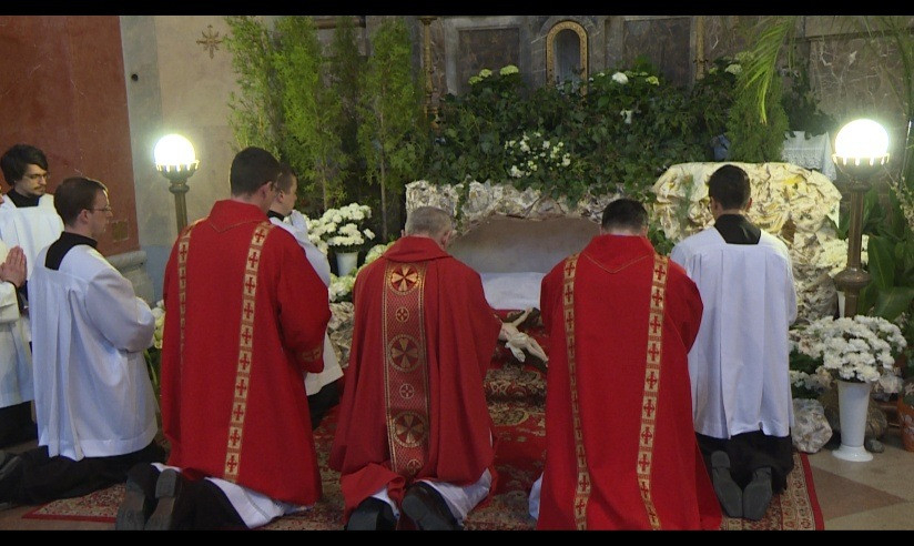 Nagypénteken az Oltáriszentséget az oldalkápolnából hozzák a főoltárhoz és az Úr imáját követően járulhattak szentáldozáshoz a hívek. A szertartás csendes kivonulással és a szent sír megnyitásával ért véget.