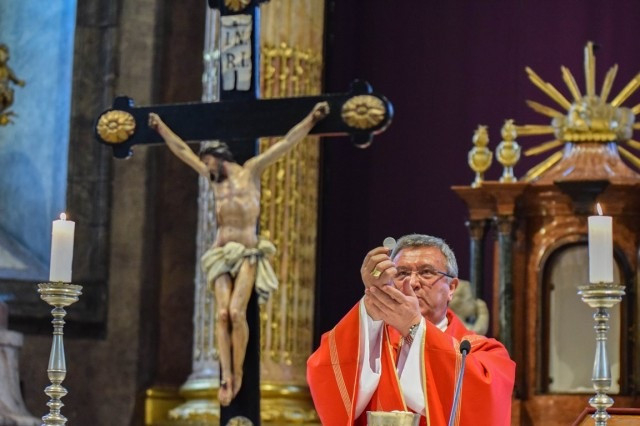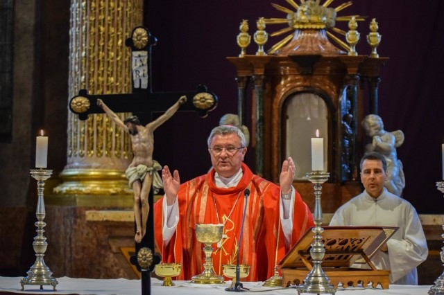 Ez megtisztító, tiszta áldozat volt. Minden főpap olyasmit áldoz fel, ami nem az övé, újdonság, hogy Krisztus saját magát áldozza fel, pedig bűn nélkül való volt. Krisztus áldozatában maga az Isten áldozza fel magát. Más vallásokban az ember ajánl fel áldozatot. Krisztus keresztáldozatának vértelen megújítása a szentmisében az emberiség vallástörténetének legfontosabb eseménye: vége a véres, kegyetlen áldozatoknak. Ez korunk emberének azt mondja, az erőszaknak leáldozott! Régen az áldozat volt a vesztes, a gyilkos a győztes. Jézus ezt megváltoztatta: győztes lett, mert áldozat lett. A kereszténység segíti az elesettet, a nőket, a magzatokat, s ez az emberi kultúrába is beivódott. Amikor az emberiség az új pogányság felé fordul, a hatalmas, szuper ember kultusza jelenik meg, mely elítéli látszólag az erőszakot, de mégis szorgalmazza, generálja. Tekintsünk fel hitünk szerzőjére, akit megfeszítettek, keresztülszúrtak, aki értünk meghalt, és halálával megtörte a halál hatalmát! Olyan főpap ő, aki együtt tud érezni gyengeségeinkkel és képes azt erővé alakítani – tette hozzá az érsek.