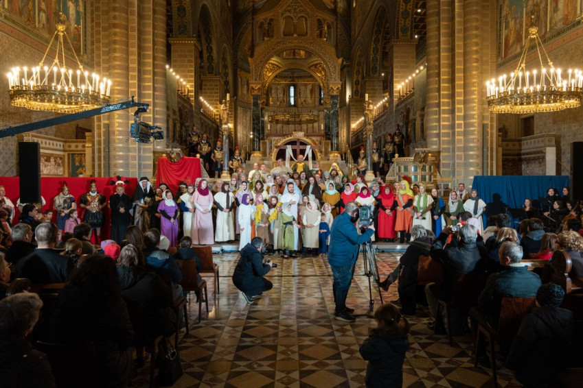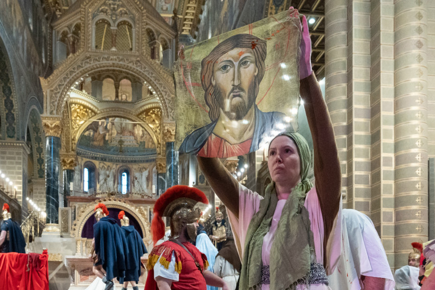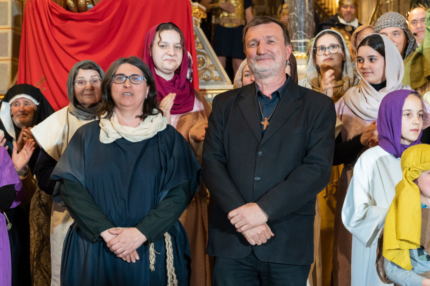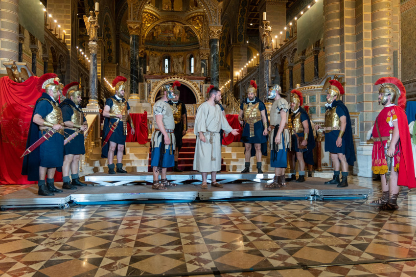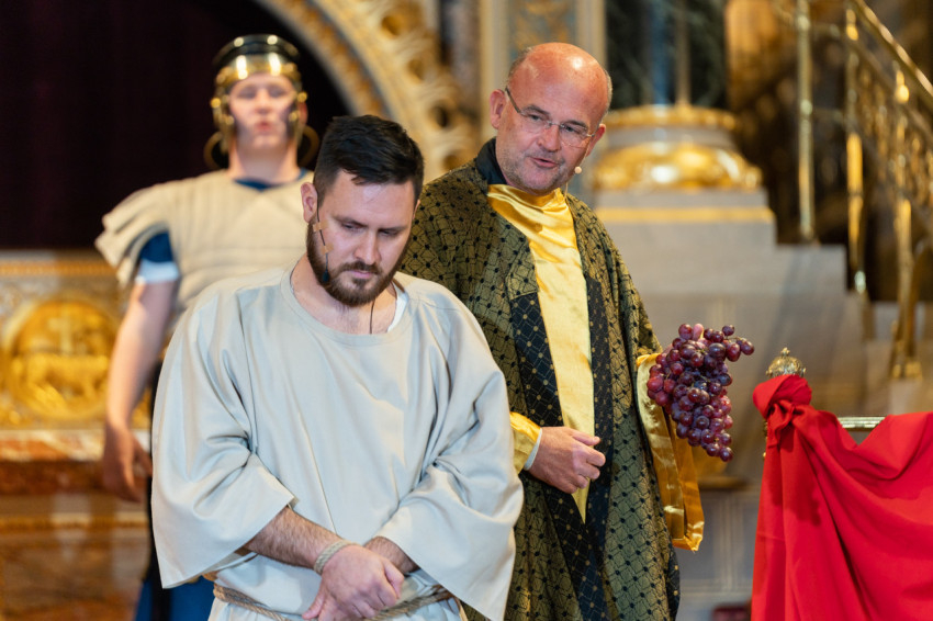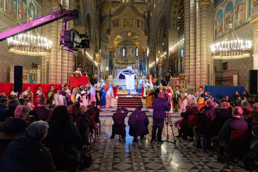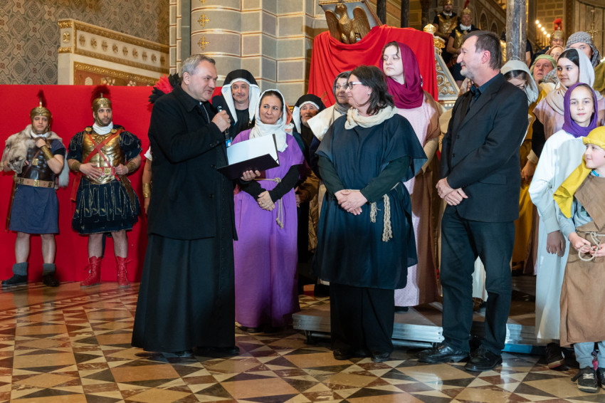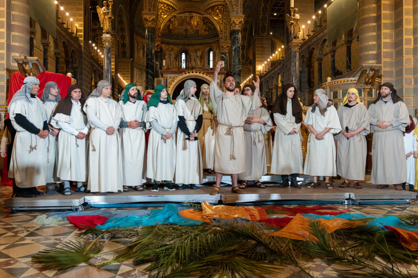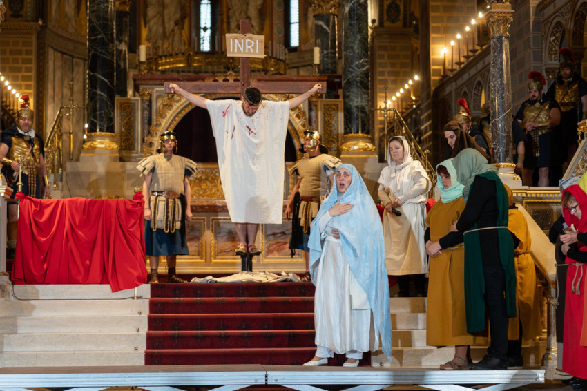 Felföldi László pécsi megyéspüspök köszöntötte a megjelenteket, köztük az egyházi és közjogi tisztségviselőket. Az érdeklődők teljesen megtöltötték a székesegyház épületét. Telt ház, a látottak okán mindvégig tapintható feszültség, megrendültség és visszatérő vastaps kísérte az előadást, melyben a Megváltó Krisztus értünk vállalt passiójának pillanatképei elevenedtek meg.
