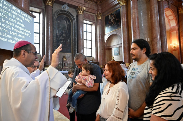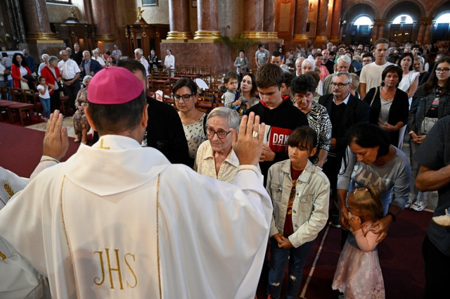 A szentmise végén Székely János püspök áldásban részesítette a nagyszülőket unokáikkal együtt.