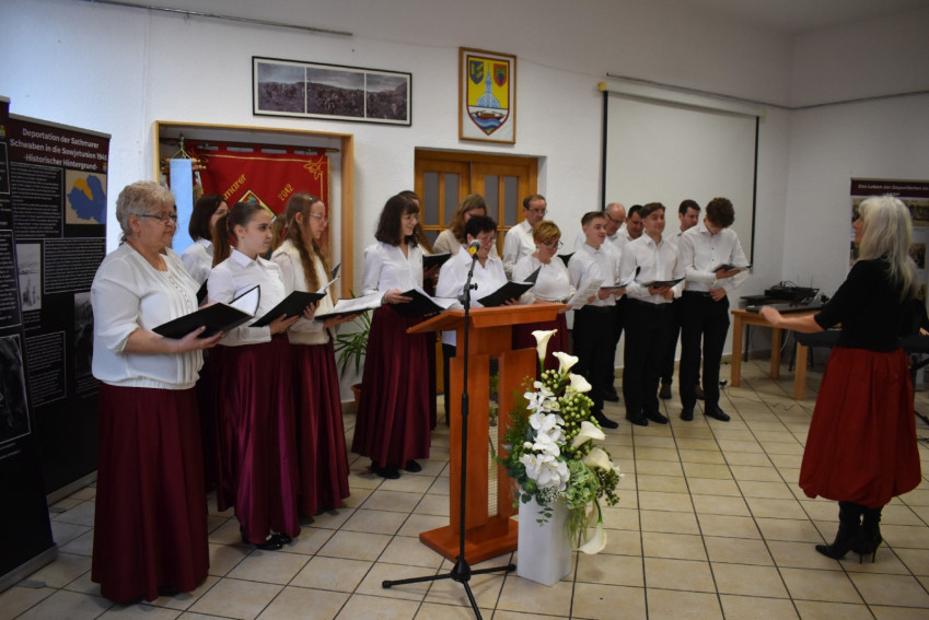 A szentmisét követően a szatmárnémeti svábház Wendelin Fuhrmann termében különleges vendéget, a tavasszal 102. születésnapját ünneplő Franz Schlachtert is köszöntötték, aki a deportálások egyik utolsó túlélője.