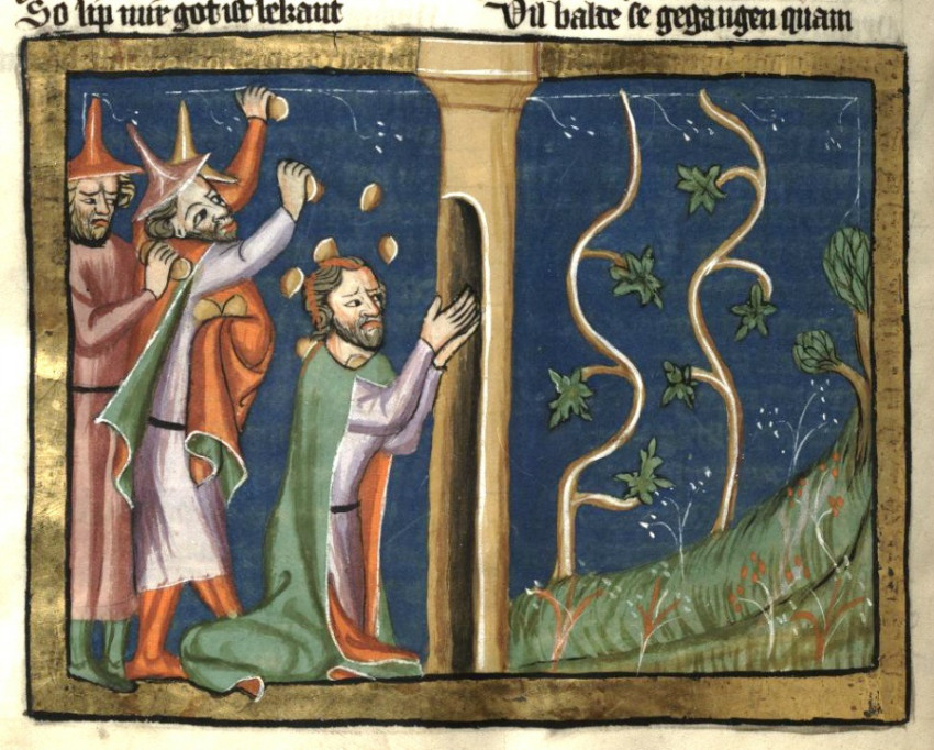 „Ami Nábottal történt, régen volt, de naponta megtörténik. Melyik gazdag nem sóvárog nap mint nap a másé után? Melyik tehetős nem igyekszik kitúrni földecskéjéről a szegényt, kiforgatni atyai örökségéből a szűkölködőt? Melyik elégszik meg a magáéval? Melyik gazdag lelke nem hevül a szomszédos birtokért? Nem egyetlen Acháb született, hanem, ami még rosszabb, naponta születnek Achábok, és soha el nem fogynak, míg világ a világ. Ha egy eltűnik, sok támad helyette: több az elvevő, mint az elvesztő. Nem egyetlen szegény Nábot lesz gyilkosság áldozata. Naponta gyilkolják a Nábotokat, naponta megölik a szegényt. (...) Meddig növelitek, ó gazdagok, esztelen vágyaitokat? Hát egyedül ti fogjátok lakni a földet? Miért veted el azt, akit a természet társaddá tett, és miért akarod birtokolni a természetet? A föld közös vagyona mindenkinek, a gazdagnak éppúgy, mint a szegénynek. Miért sajátítjátok ki magatoknak a termőföld tulajdonjogát, gazdagok? A természet nem ismer gazdagokat, hiszen mindenkit szegénynek alkot meg. Nem ruhában születünk, nem arannyal, ezüsttel érkezünk. Mezítelen emberek jönnek napvilágra, akiknek ételre, italra, ruházatra van szükségük, és mezítelenül fogadja vissza magába szülötteit a föld, amely a felhalmozott vagyonokat nem tudja a sírba zárni.” (Szent Ambrus: De Nabuthe 1.1-2.)