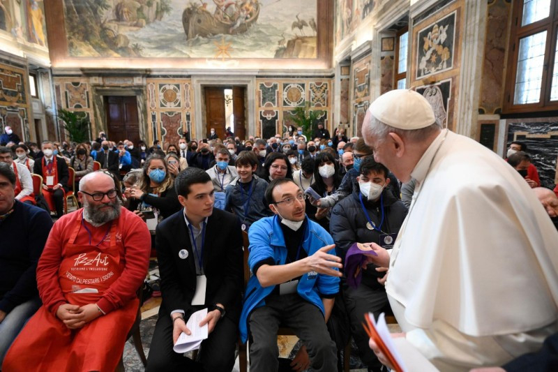 Ferenc pápa az összefogás jelentőségét hangsúlyozta. A pandémia és az ukrajnai háború rádöbbentett, hogy mennyire ki vannak szolgáltatva az idősek, a fogyatékkal élők és hozzátartozóik. Erre válaszolnunk kell egyházi és civil szinten egyaránt. Szolidaritás, hálózatban gondolkodás, imádság és konkrét szeretetszolgálat – ezzel gyógyíthatjuk a kiszolgáltatottak sebeit. Az Olasz Autista Alapítvány támogatóinak a Szentatya köszönetét fejezte ki, hiszen az önzés és a saját haszon szerzése helyett a testvériség építői társadalmunkban.