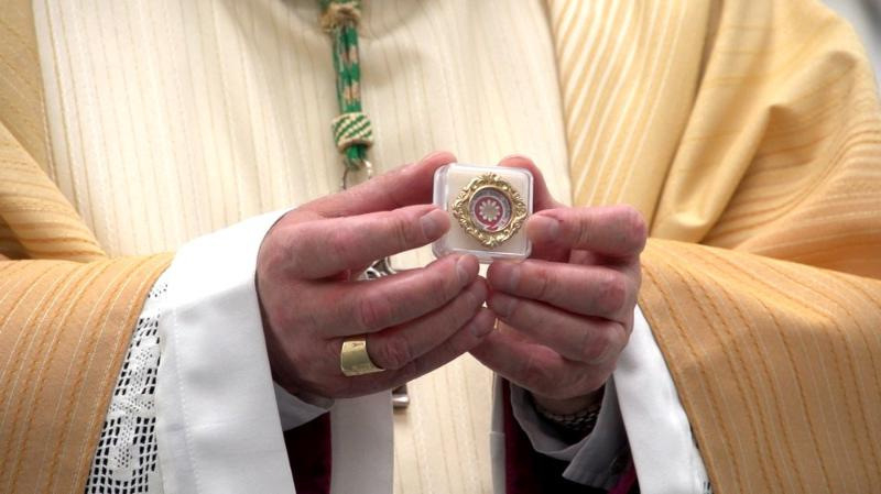 A templom legmagasabb pontján a kereszt messziről vonzza az emberek tekintetét, és Istent hirdeti egy olyan világban, amely elfeledkezett róla. „A templom nem egy épület, hanem Isten épülete, Őt kell hogy hirdesse a világban. A templom arra hív bennünket, hogy jel legyünk a világban, és valljuk meg a keresztény hitet, a keresztény kultúra mellett álljunk ki, akkor is, ha ez ma félelmetesnek tűnhet” – buzdított a főpásztor, majd a templom védőszentje, Szent II. János Pál pápa péteri szolgálatát méltatta.