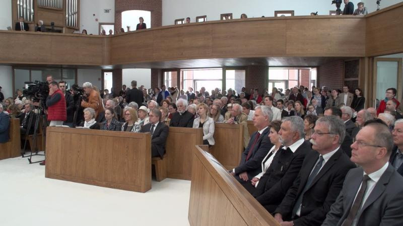 A szentmise végén Soltész Miklós államtitkár Semjén Zsolt miniszterelnök-helyettes üdvözletét tolmácsolta, aki Krakkóból, Szent II. János Pál pápa egykori szolgálati helyéről üzent a közösségnek. Az államtitkár köszöntőjében elmondta, a kormány 340 millió forinttal támogatta a templomépítést, de lélekkel csak a közösség építheti tovább, töltheti meg.