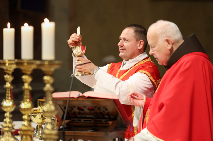 Kovács Zoltán felidézte: tizenkét éves gyermekként itt ült, ebben a templomban a vasárnap reggeli diákmiséken, és vágyakozva nézte az oltárnál szolgáló ministránsokat, milyen jó lenne ebben részt venni. A most gyémántmiséjére készülő Katona István atya készítette fel a hitre. Kovács Zoltán 1991. május 12-én volt elsőáldozó. Nagyon szeretett volna ő is ministrálni, de nem tudta, hogyan lépjen oda István atyához a kérésével. Néhány nap múlva, pénteken délután Katona István így szólt hozzá: