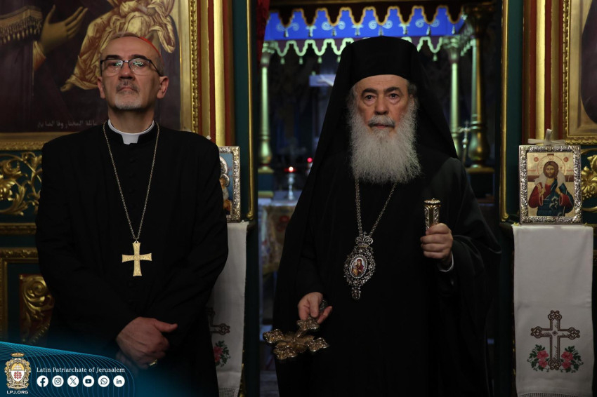 Pierbattista Pizzaballa bíboros III. Teofil jeruzsálemi görög ortodox pátriárkával együtt tett látogatást a Gázai övezet egyetlen katolikus plébániáján.