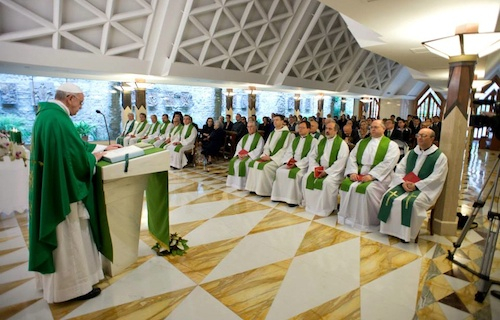 Kérjük az Urat, hogy tegye azt mindnyájunkkal, amit a tanítványokkal tett, akik féltek az örömtől: nyissa meg értelmünket: „Akkor megnyitotta értelmüket, hogy megértsék az Írásokat”. Nyissa meg értelmünket, és értesse meg velünk, hogy Ő élő valóság, hogy van teste, hogy velünk van és elkísér bennünket. Ő az, aki győzött. Kérjük az Úrtól a kegyelmet, hogy ne féljünk az örömtől! – buzdított csütörtök reggeli homíliájában a Szentatya.