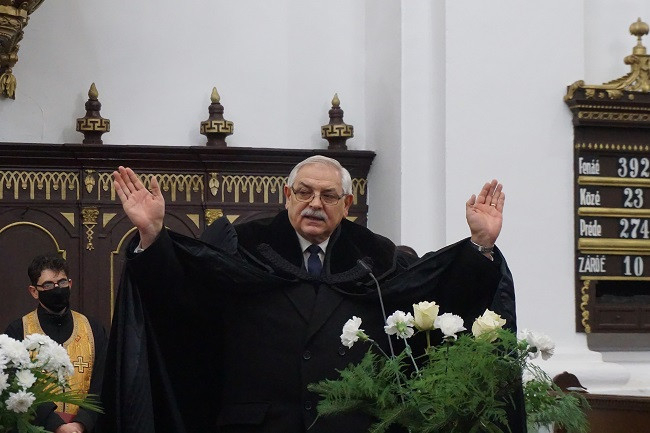Szabó Sándor, a miskolci belvárosi gyülekezet lelkipásztora köszöntötte a templomban egybegyűlteket: reformátusokat, evangélikusokat, görög- és római katolikusokat, metodista és ortodox hívőket és elöljáróikat, vezetőiket.