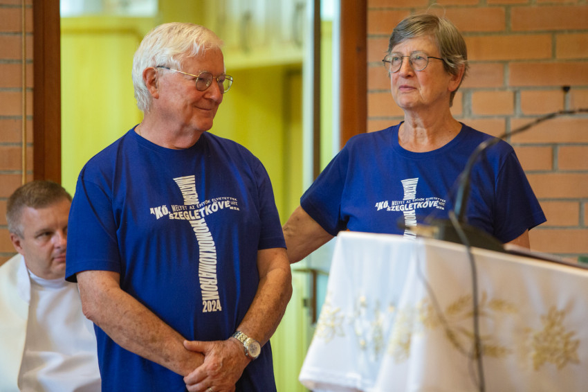 A szentmise végén a táborvezetők köszöntötték a francia házaspárt, Gabrielle és Alfred Marxot, akik hazájukból évtizedekkel ezelőtt elhozták az Imatábort Magyarországra, s idén nyolcvanadik születésnapot és ötvenedik házassági évfordulót ünnepeltek.