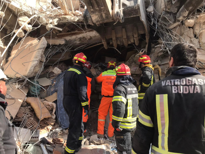 Egy Montenegrói tűzoltó rajjal dolgoztunk közösen, akik ugyanolyan izgatottak lettek, mint mi, mert ők már letettek arról, hogy ebben az épületből valaki életben előkerül.