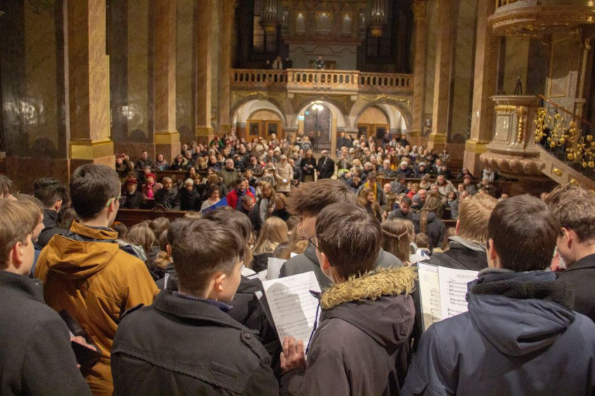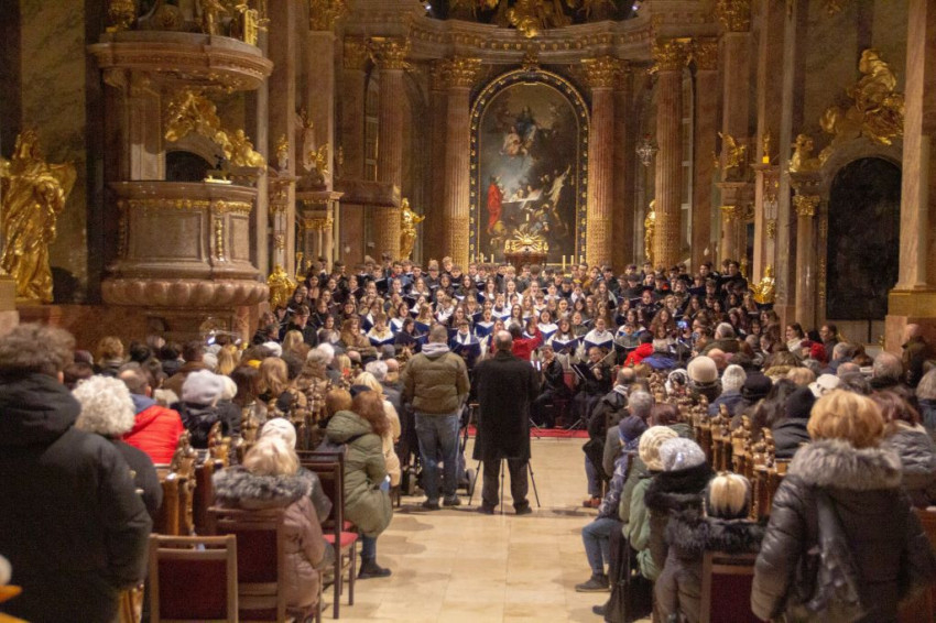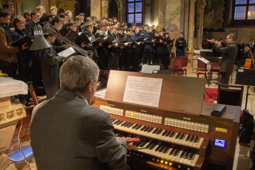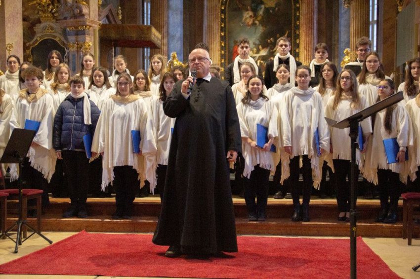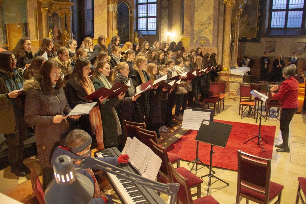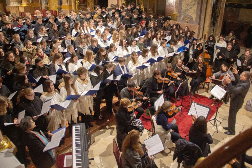 Mozart G-dúr miséjét adta elő ének- és hangszerkísérettel a győri Czuczor Gergely Bencés Gimnázium és Kollégium Vox Angelorum Kórusa, a mosonmagyaróvári és a budapesti piarista gimnáziumok kórusai, valamint a Patrona Hungariae Gimnázium kórusa.
