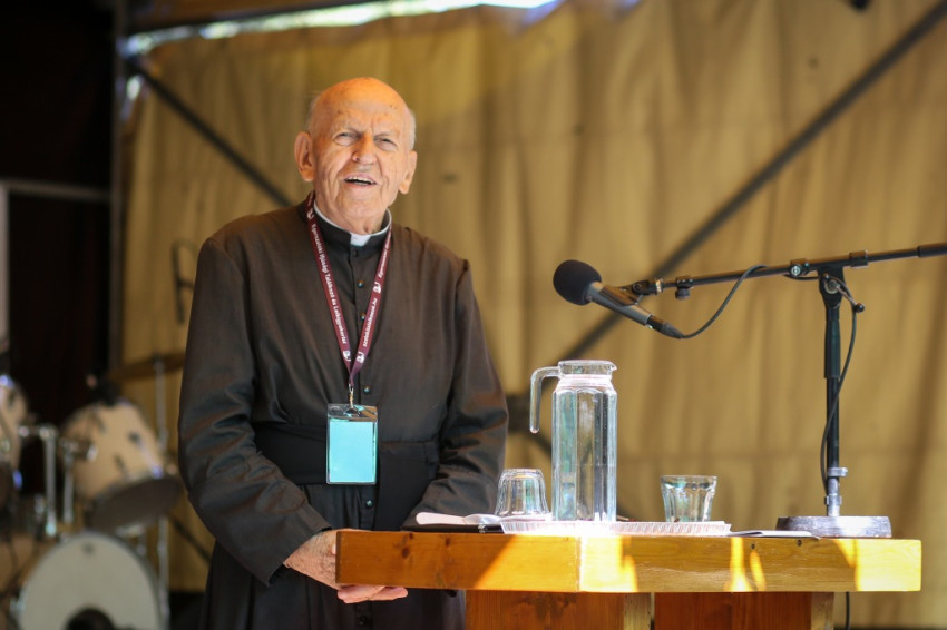 Lajos atya a betegágyaknál megélt évtizedes tapasztalatából merítve beszélt a fiataloknak. „Mindenkinek megvan a keresztje, ezt nem lehet elvitatni, és senki nem menthető fel a felelősség alól. Minél idősebb az ember, annál nehezebb. Kínlódunk, az élet megoldandó feladat. De Isten neveli az embert – osztotta meg 91 év bölcsességét. „Segíts teljessé lennünk, Istenünk! Jó, hogy itt vagytok. Ez már egy kilépés a megszokottból. Jövőre találkozzunk!” – búcsúzott Lajos atya.