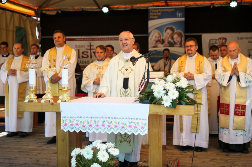 Az érsek mosolyogva nézett a színpad előtt, a fűben ülő fiatalokra. „A Szentlélek mélyszántást végzett” – állapította meg a sugárzó tekinteteket látva. „Azt tapasztalom, hogy belső forradalom ment végbe itt a lelkekben, hogy megértettetek valamit abból a hatalmas szeretetből, amelyet Isten kiáraszt ránk. Hogy minden jó elhatározás életre szóló döntéssé nemesedhessen, fűzzétek ezeket csokorba és helyezzétek a Szűzanya képe elé, kérve oltalmát a megvalósításban.