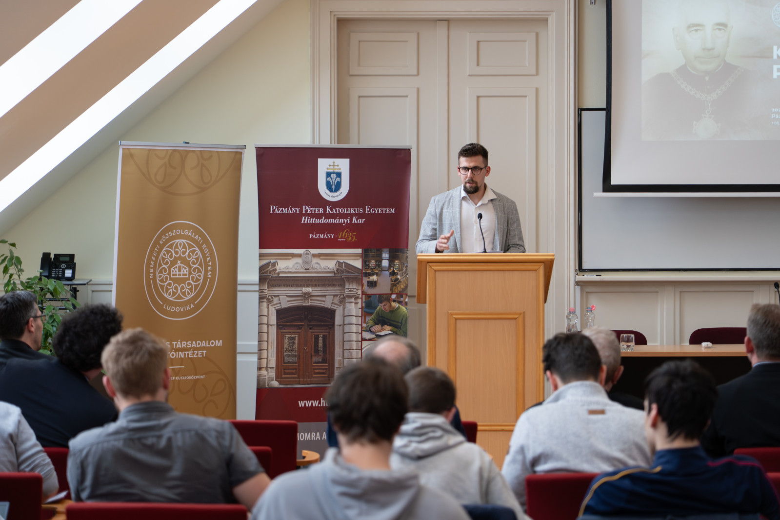 Jancsó András (PPKE, NKE) Kecskés Pál politikai vallásokról alkotott gondolatait mutatta be a professzor Faj és vallás című, 1934-ben megjelent írásán keresztül.