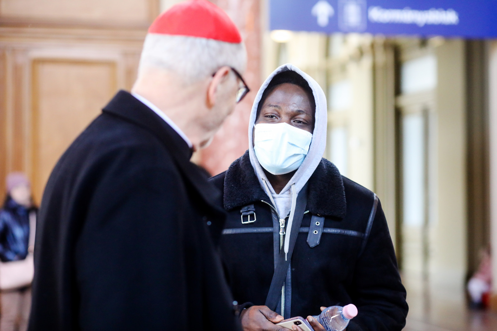 A katolikus segélyszervezetek munkájának megismerését követően Czerny bíboros megnézte a peronokat, ahová a vonatok érkeztek – az éppen akkorra várt vonat késett –, majd körbejárt, és beszélgetett a menekülőkkel.