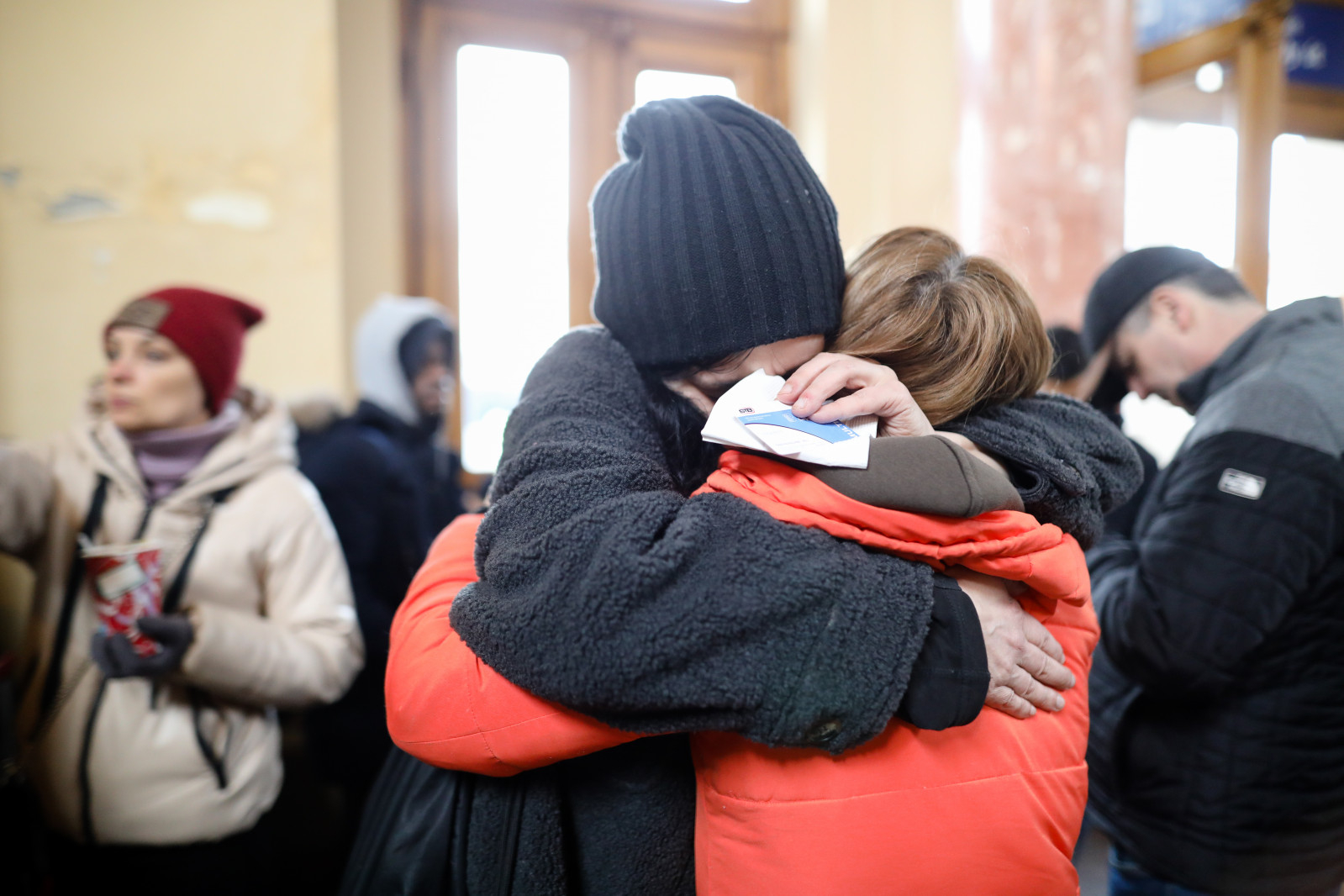 Hosszan elidőzött egy tizenegy fős családnál, négy felnőtt nő és hét gyermek várakozott fáradtan, négynapos utazás után a délután induló vonatra. Riminibe készültek, ahol már olasz állampolgárságot kapott rokonuk várta őket. Elmesélték, hogy Krivij Rihből indultak el a négy napja, ahol tegnap kezdtek el bombázni az orosz csapatok.