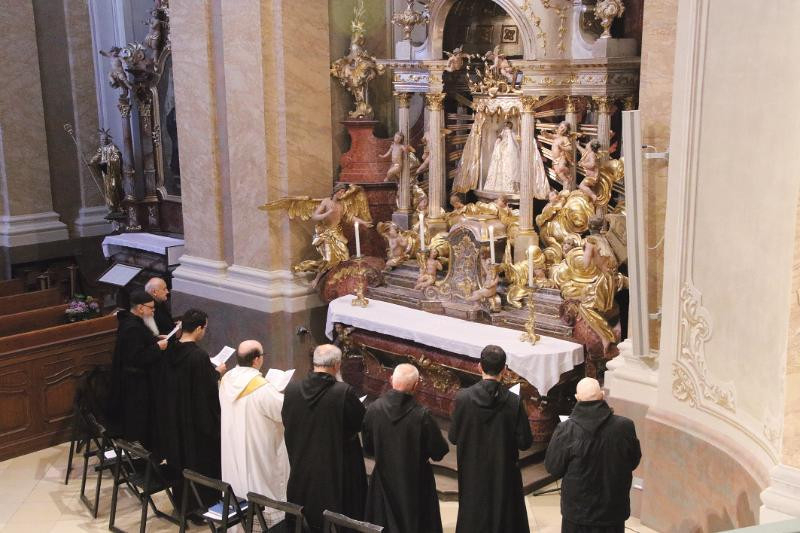A belső udvarunkban egy szép, nagy hársfán a fészekodúban cinegecsalád lakik. Szeretnék készíteni egy-két szép fotót róluk… Mozogni is kell, túrázni volna jó. Szerencsére itt van a belső udvar, a kvadratúra, ahol naponta túrázhatok körbe-körbe, két-három kilométert. Jó együtt mondani a rózsafüzért a közösséggel a Mária-oltár előtt – az apátság YouTube-csatornáján élőben követhető a szertartás –, ilyenkor megszűnik számomra az idő. A közös szentmisén mindig más vezeti a liturgiát, más mond rövid prédikációt, és ezzel máris vége a napnak.