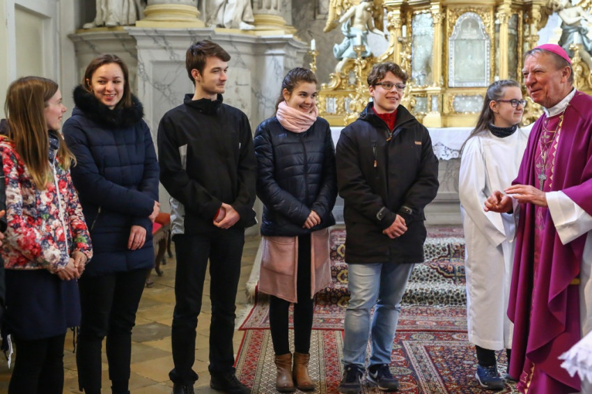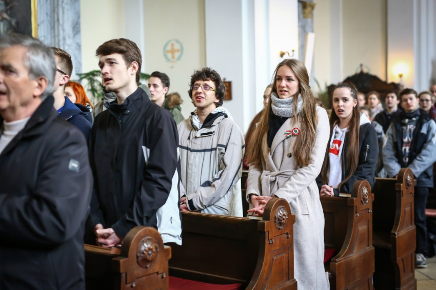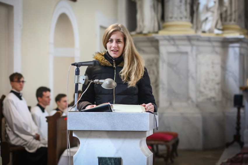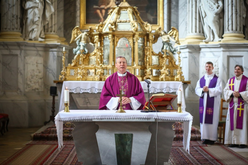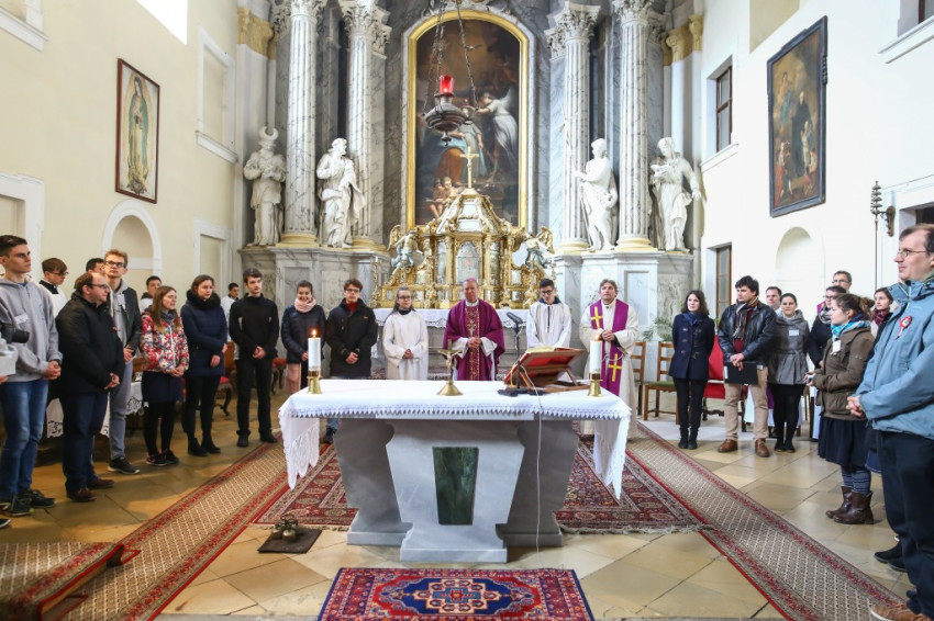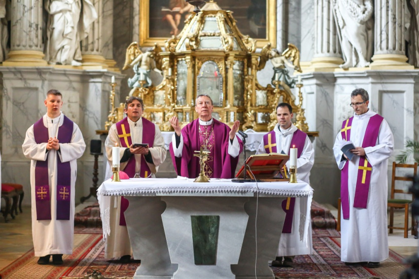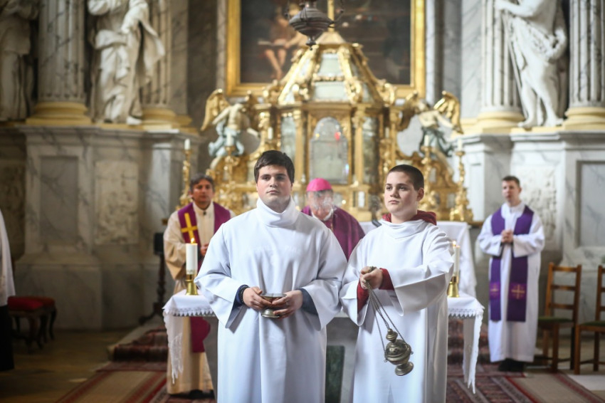 Három előtt pár perccel vágódom ki egy kávézóból, és ugrom vissza a biciklire a piarista gimi közelében. Mivel elvileg mindjárt kezdődik a püspöki mise, száguldani kezdek a járdán (amiért ezúton is elnézést kérek). Csak nagy fékezéssel sikerül Beer Miklósnak és társaságának utat adnom a Schuszter Konstantin tér sarkán, mielőtt a székesegyház körül tiszteletkört tennék, majd fotóriporter kollégámmal belépnék az iskola kapuján. A labirintusszerű folyosókon át egyszer csak egy sekrestyébe jutunk, amelyen a biciklis incidens miatt szabadkozva, kissé zavarban megyek át végül a templomba.