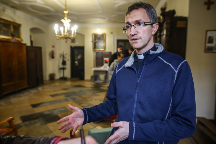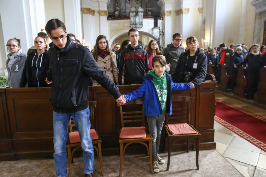 A hétvégére kétszázan regisztráltak, minden ötvenedik résztvevő ajándékot kap. Éppen ezeket adják át, amikor a sekrestyébe megyünk a kollégámmal, hogy elcsípjük Farkas Lászlót, Bezák atya elődjét, aki 2007-től 2017-ig az egyházmegye ifjúsági lelkészeként működött. Ő volt a Váci Egyházmegyei Ifjúsági Lelkészség Mente-missziójának elindítója, amely krisztusi ifjúsági közösségek alapítását tűzte ki célul. Végiglátogatta a plébánosokat és a hitoktatókat, hogy együtt kitalálják, hogyan lehetne segíteni a 14 év feletti fiatalokon, akiknek a települések hetven-nyolcvan százalékán nincs lehetőségük katolikus ifjúsági közösséghez tartozni. Az egyházi kötődés, amely addig például a ministrálás vagy a hittan miatt még néhányuknál valamennyire megvan, ebben a korban gyakran megszűnik. Nem feltétlenül azért, mert a fiatal már nem akar templomba járni, hanem mert a településén nem talál olyan kortárs közösséget, amelyhez kapcsolódhatna. Sok fiatal így „vész el”. De ha megszólítják, ha megérzi, hogy szükség van rá, boldogan jön, vállal feladatokat.