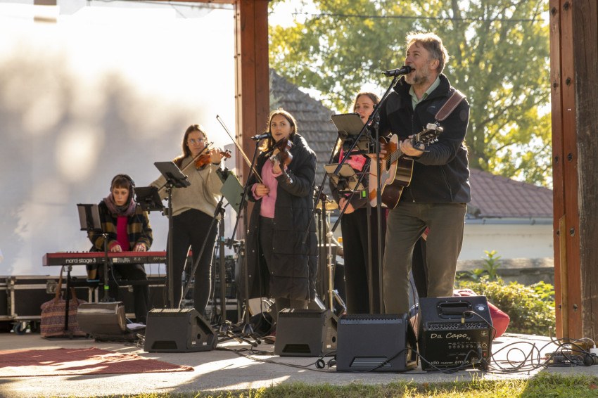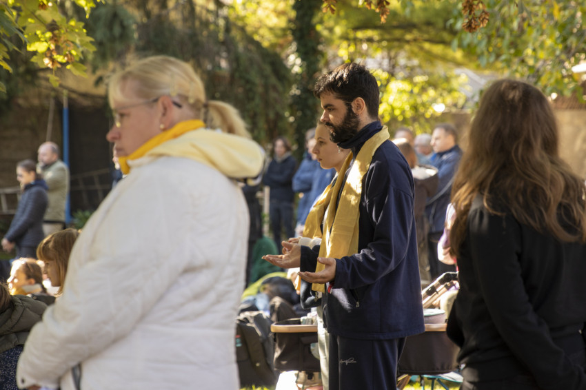 Zenés, imádságos ráhangolódással indult a nap a nagymarosi templomkertben. Csiszér László és zenekara dinamikusan kezdett az októberi napfényben aranyló, kissé hűvös reggelen, majd következett a szokásos táncos „átmozgatás” a főelőadás előtt.