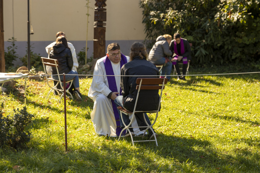 Riesz Domonkos rámutatott: mindezek ellenére nem a mi erőfeszítésünk a fontos, hanem az, hogy az Úr is vágyódik ránk. Ebből ered a reményünk. „Papként látom, látjuk, hogy a traumákra, sebekre ő ad gyógyírt”, átláthatatlan problémahalmazainkat ő tudja kibogozni, Isten közelségét megtapasztalva megérkeznek a válaszok legmélyebb kérdéseinkre.