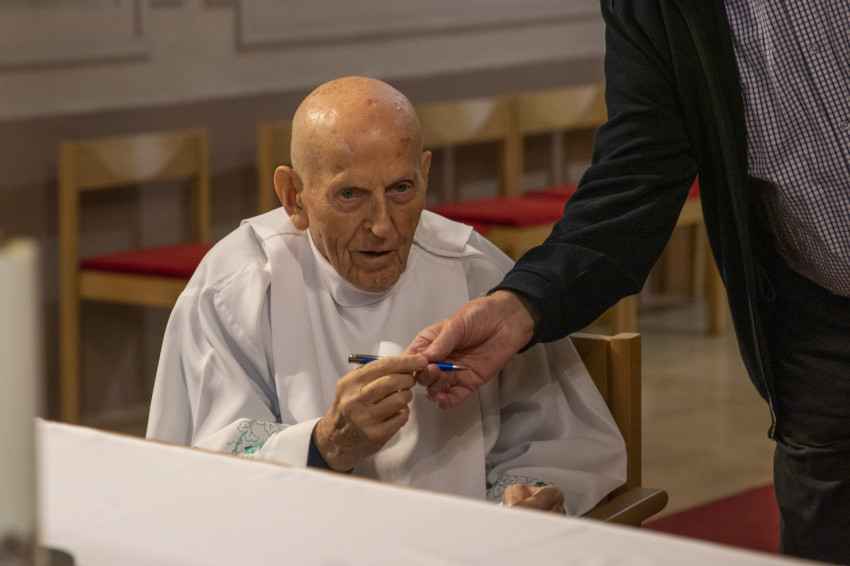A betegséggel küzdő, de ez alkalommal remek testi-szellemi állapotban lévő, kilencvennyolc éves Kerényi Lajos piarista szerzetes elmélkedést tartott a nagymarosi templomban, és egy aranylakodalmas házaspárt is megáldott. A párt ötven évvel ezelőtt ő eskette.
