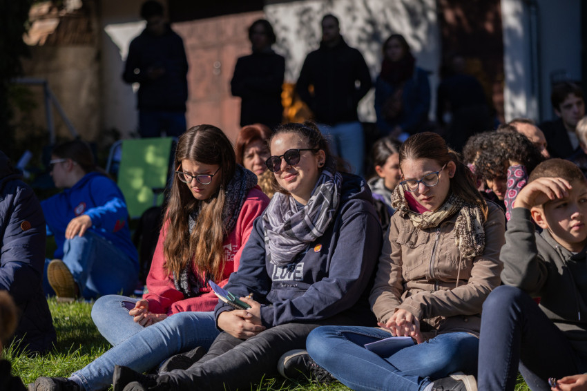 „Nemcsak random vagyunk a világban. A mindenség velünk, veled és velem teljes. Az Úr teremtése vagyunk, ő ad távlatot az életünknek akkor is, amikor fájdalmas dolgok érnek – és nemcsak pár évtizedről van szó. Amikor a szívünkkel is elhisszük az örökkévalóságot, s azt, hogy ez már most is itt van, akkor valami történik bennünk” – mondta Riesz Benedek.
