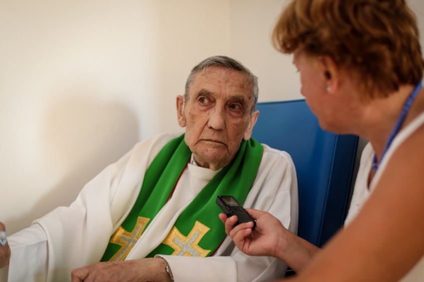 Mintegy 220 idős ember él a Szent Erzsébet Otthonban, köztük közel negyvenen 90 felettiek. Így az ugyancsak pap, 97 éves Dobozy István is. „Magam sem hiszem el. Jövőre ilyenkor lesz az acélmisém. Ha megérem, jó lesz, hanem, akkor is jó lesz, kivéve, ha a tisztítótűzbe kerülök” – mondja, és az Új Ember új főszerkesztőjéről érdeklődik. Imádkozik, misézik, beszélget a sorstársakkal. Vigasztalja azokat, akik a családból száműzöttnek érzik magukat. Boldog, és itt is otthon van, mint mindenütt, mert Jézus vele van.