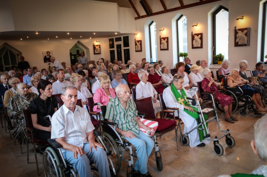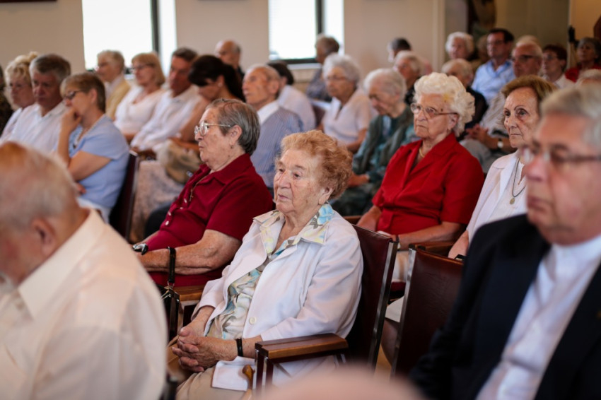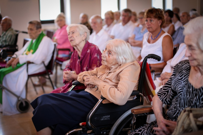 És boldognak vallja magát a 91 éves, járókerettel közlekedő ünnepelt, Futó Károly is. A vasmisés ünnepi ebédre tejberizst kér, dicséri a nyugalmat, békét sugárzó környezetet, a gyönyörű kertet, a jó ellátást. A jubileumi szentmisén nincs körülötte családtag, nincsenek ott a hosszú életút kísérői. Mikor erről kérdezzük, válasza belső békéből fakad: Kinő az ember a családból, éljenek a maguk útján – mondja.