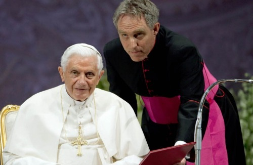 XVI. Benedek február 11-én jelentette be lemondását, amely február 28-án lépett életbe. Gänswein továbbra is a titkára maradt, bár az érsek egyben a pápai udvar prefektusa is.