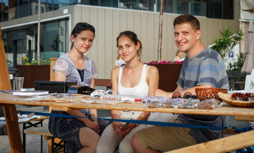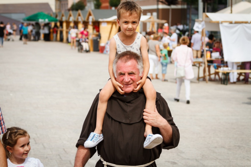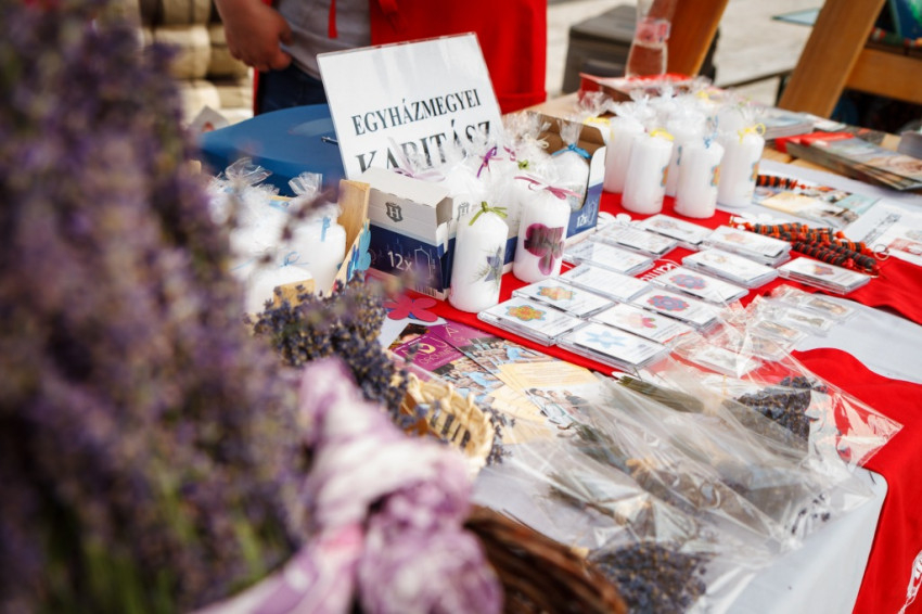 De előtte még bemegyek a győri karitász sátrába, és a pultjaiknál is megfordulok. Ők itt ma a legtöbb gyereket vonzó és nem utolsósorban a gyilkos nap elől menedéket adó szereplői a szeretetnapnak. Virágos képkeretet, gombokból kulcstartót készítő, hintalovazó, csúszdázó gyerekeket látok, majd a karitász által foglalkoztatott kilenc megváltozott képességű győri munkatárs által készített hűtőmágneseket, gyertyákat nézem meg a pultnál. Aztán átvágok a téren, és majdnem elcsábulok a miseborkóstoló standhoz, de a nagy melegre való tekintettel a málnaszörpöt választom a karitászsátornál. A nap kedvezményezettjei a dévai Szent Ferenc Alapítvány otthonaiban élő gyermekek, fiatalok.