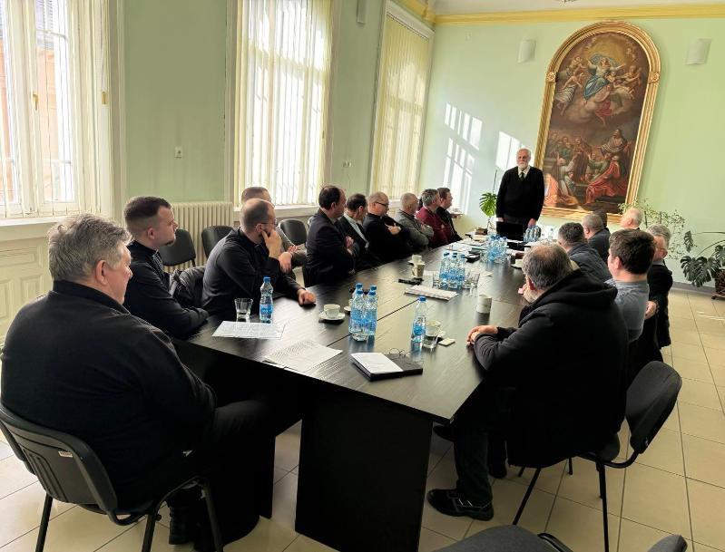 A rekollekció a zsolozsma napközi imaórájának elmondásával kezdődött, majd a megyéspüspök köszöntötte a jelen lévő paptestvéreket, bemutatta az előadót, akinek megköszönte, hogy laikusként beszél a papoknak a saját hitbeli és imaéletéről.