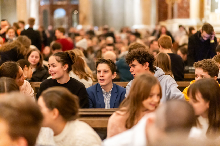 Ezen az estén évről évre zsúfolásig megtelik a Szent István-bazilika. Összegyűlnek a „népek”, a kicsik vezetőikkel, nagy számban az ifi korosztály, és a háttérben sok szülő, akik maguk is a Regnumban nőttek fel.