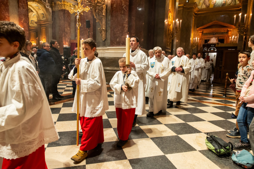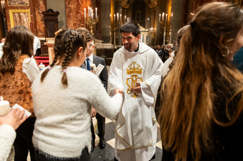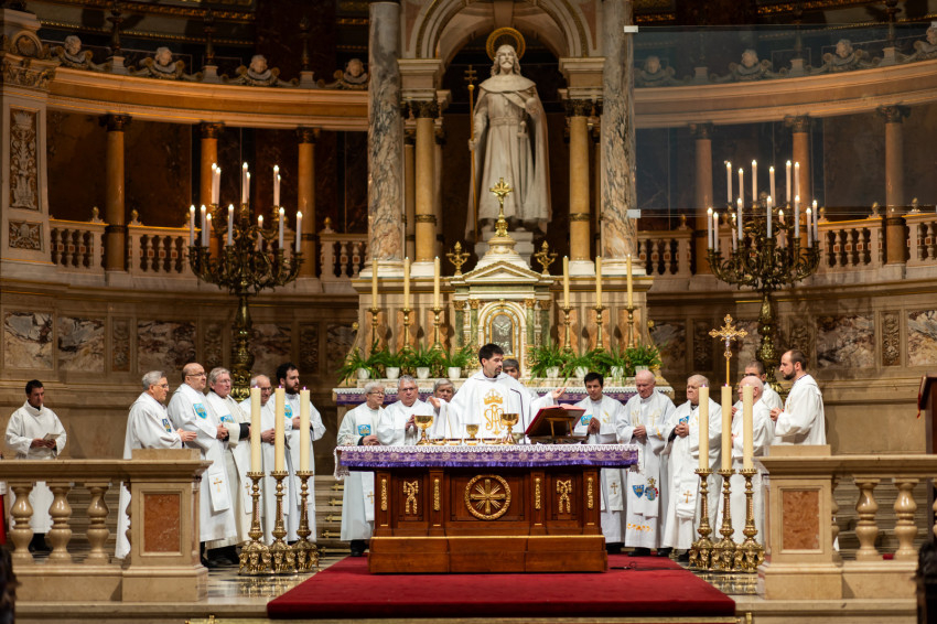 A szentmise elején a főcelebráns, Horváth István, a Regnum házfőnöke köszöntötte a sokaságot: „Értetek ajánlom fel a szentmisét, hogy felismerjétek, miként vezet a Jóisten, és befogadjátok ajándékait”.