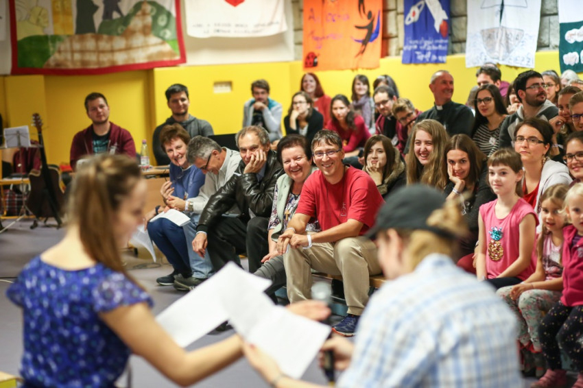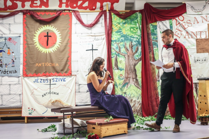 Vacsora után a sötét kerten át a tornaterembe megyünk, és megkezdődik a mesébe ágyazott emlékezés. A jubileumi hétvége két vezetője a húsz éve alvó Csipkerózsika és a herceg, aki most csókkal ébreszti fel a lányt. Hamarosan azzal szembesülök, hogy itt minden mese. Kiderül ugyanis, hogy milyen sokféle mesehős bőrébe bújtak a kanizsai antióchiások az elmúlt húsz év 34 hétvégéjén. Kalózok, bohócok, indiánok, lovagok… – ennyit sikerül felírnom, de már ez a néhány példa is elég, hogy megérezzem, a kanizsai Antióchiát mekkora kreativitás, lelkesedés, mennyi humor és vitalitás jellemzi. Pár perccel később ezt állapítom meg akkor is, amikor a mai alkalomra készült koreográfiát kezdik eltáncolni-mutogatni, és bármilyen bonyolult is, mindenkinek sikerül megbirkóznia vele. Aztán a szintén erre az alkalomra írt indulót énekeljük. De mindez csak bevezetés, sőt a bevezetés bevezetése csak. Ami most következik, abból lehet igazán megérteni, milyen hőfokon ég a kanizsai Antióchia – és már húsz éve! Korábbi vezetők: Memi (Némethné Horváth Emília) és férje, Imrus meg Kóré Peti mesél nagy lelkesen. Arról számolnak be, hogyan hozott az életükbe újra meg újra vidámságot az Isten. Hogyan váltak elkötelezett antióchiásokká (itt úgy mondják: antisokká). Hogyan adták tovább az Antióchiát Sopronban, Kaposváron és Siófokon. A 34 hétvégén, amit szerveztek, 905 fiatal vett részt. Hallgatom őket, és az a benyomásom: olyasmit akarnak átadni, ami szavakba foglalhatatlan. A közösség átalakító erejéről beszélnek; a lelkesedésről, amely a valahová tartozásból, egy nagy lelki család tagjává válásból fakad.