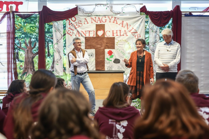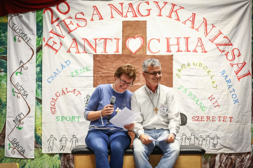 Pár perccel később a nagykanizsai Antióchia élő legendáival, Memivel és Imrussal is le tudok ülni pár percre. Az a kirobbanó energia, amellyel ők mindmáig jelen vannak a közösségben, számomra mindig szinte hihetetlen volt. Azt hiszem, ők már akkor „antisok” voltak, amikor nem is hallottak az Antióchiáról. Elmesélik, hogy 1996 táján mennyire kerestek valamit, leginkább a saját lányaik miatt. Egy olyan közösséget, ahol lányaik barátokat találhatnak, amelynek világosan lefektetett alapelvei vannak és kidolgozott módszere. És amit Budapesten tapasztaltak, amikor 14 fiatallal elmentek egy ottani hétvégére (én is a vendéglátók között voltam), az pontosan megfelelt az elképzeléseiknek. Fontos volt például, hogy az Antióchiában nem magasröptű tanítások, hanem személyes példák révén erősödhet a fiatalok hite, hogy a gondjaikat-kétségeiket egymással oszthatják meg. Kimondhatják, ami bennük van, és meghallgatják őket. Megismerik egymás lelkét, és fokról fokra megérzik, hogy nincsenek többé egyedül.