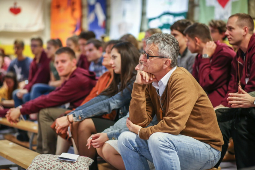 A tornateremben pár perccel később püspöki fórum következik. Varga László előadással kezdi. A Szentlélek egyszer megszólította – mondja –, és arra kérte, hogy ossza meg az életét a szegényekkel. Ipolytölgyesre, az értelmi sérültek intézetébe szeretett volna kerülni, de a püspöke Somogysámsonba helyezte. Itt arra indította a Lélek, hogy vegye magához csaknem teljesen béna, nehezen beszélő barátját. Először úgy tűnt, nem fog sikerülni segítőt szerezni (Varga atya gerincbeteg lévén nem emelhetett), de aztán azt is küldött az Úr. Jézus mindig a kicsinyhitűség miatt feddi meg legjobban a tanítványait.