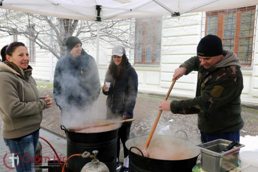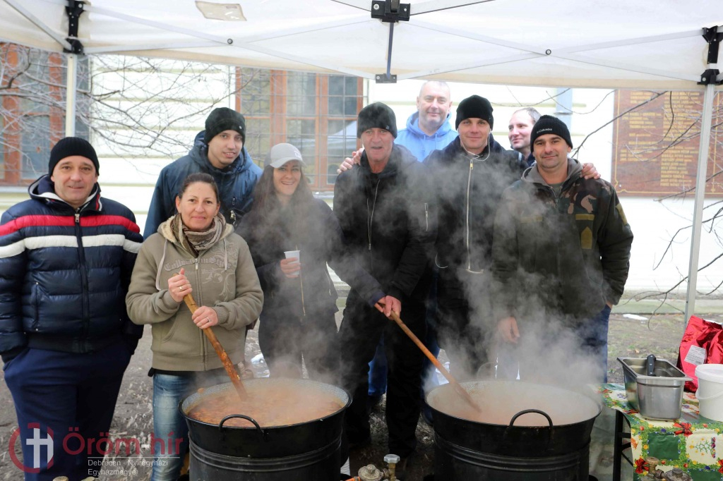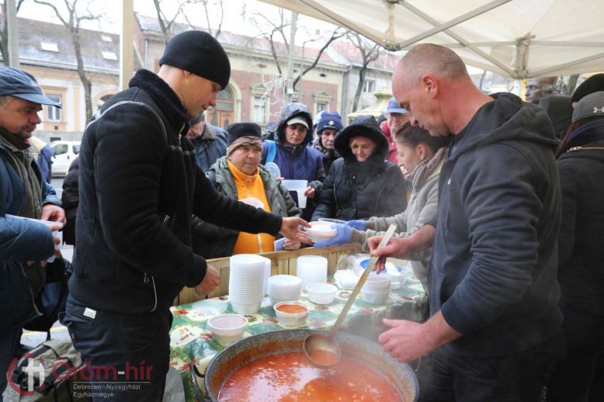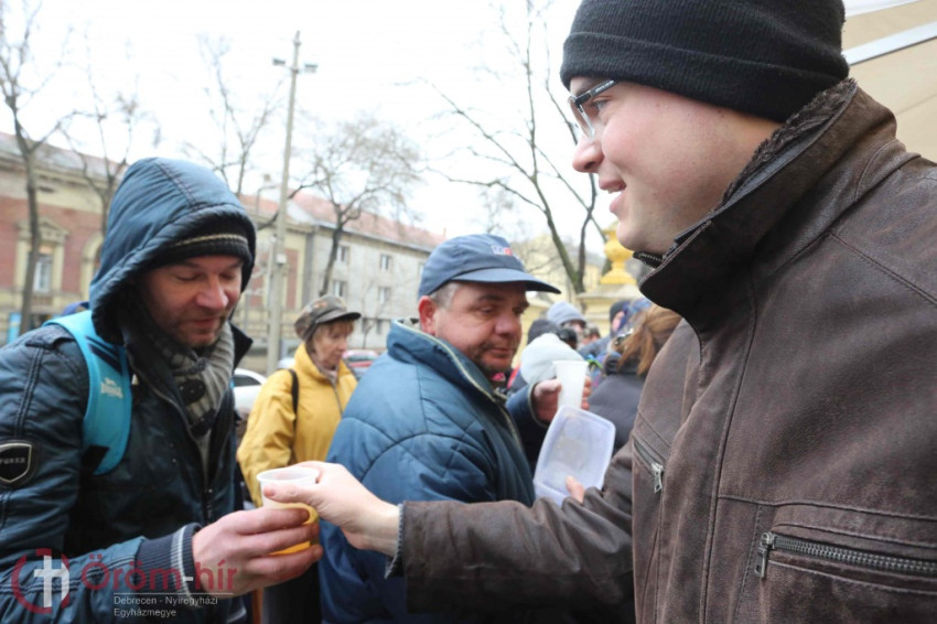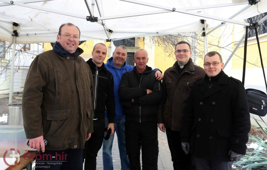 Taskó Rodrigó, Kálucz Csaba és Bottlik József vezetésével a baráti társaság a debreceni Szent Anna-székesegyház udvarára várta a hajléktalanokat, a nehéz helyzetben élőket.