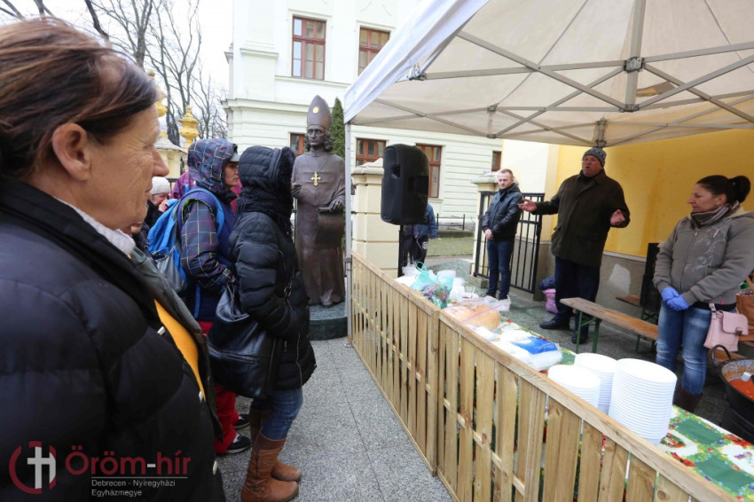 Az ételosztáson Markovics Balázs káplán és Krakomperger Zoltán plébános is részt vett. Zoltán atya köszöntötte a jelenlévőket, és a gulyásleveshez lelki útravalót is adott, kifejtette, korgó gyomorral nehéz ünnepelni, de nemcsak a testnek, a léleknek is szüksége van táplálékra, amit ha megvonnak az embertől, előbb-utóbb az életét minősíti.