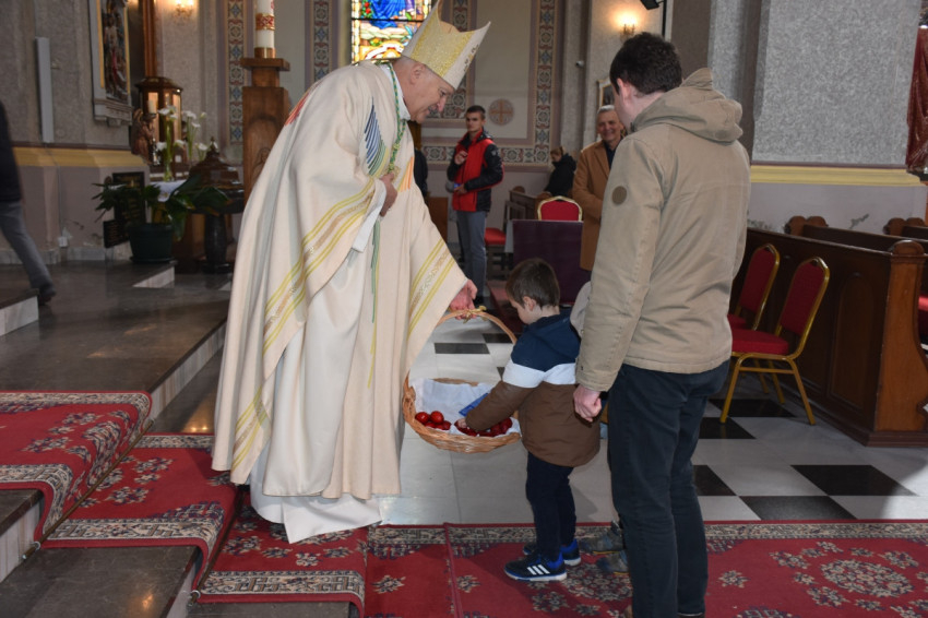 A szentmise végén a főpásztor szerény ajándékkal kedveskedett a jelen lévő gyerekeknek, fiataloknak.
