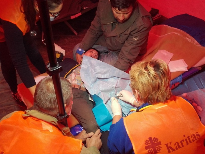 A táborban több segítségre szoruló idős személy és gyermekes család tartózkodik. A magyar Katolikus Karitász orvosi sátrának munkatársai továbbra is nagy erőfeszítéseket tesznek a betegek ellátása érdekében. A magyar egészségügyi csapathoz szlovák orvosok is csatlakoztak, így nemzetközi összefogás alakult ki. Az orvosok munkáját önkéntesek is segítik.
